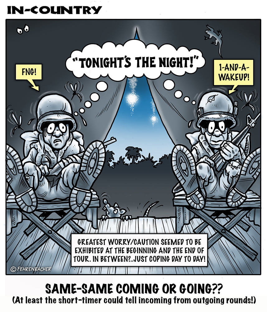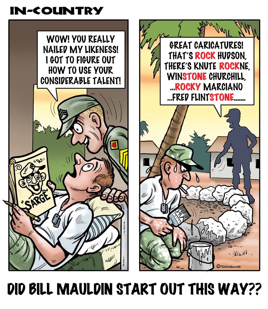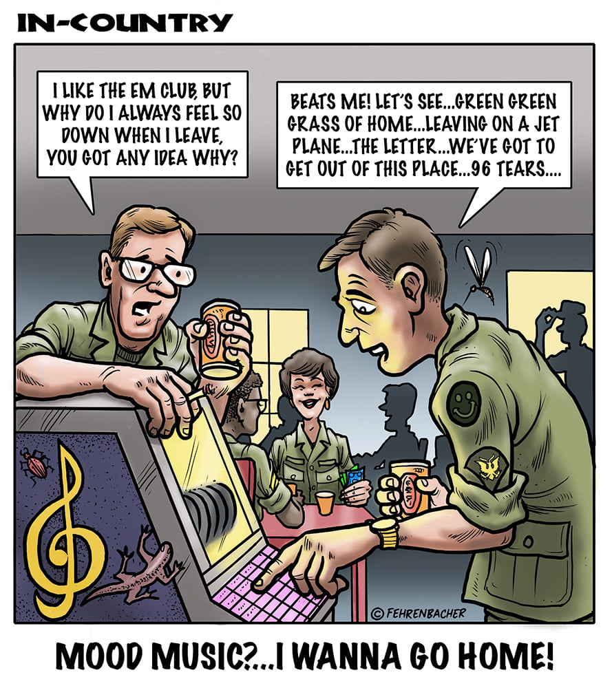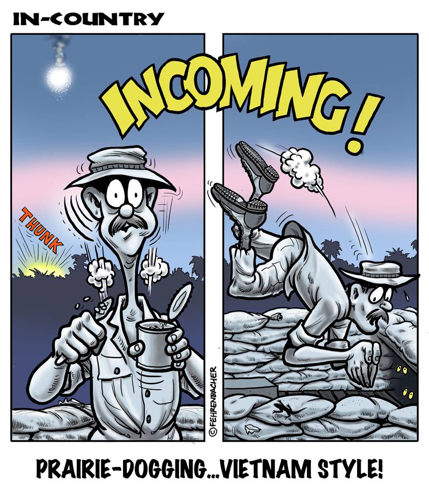 Phil enlisted in the Army in 1965 where he served for years in Vietnam. He became a graphic designer and has worked for the state of Oregon for 26 years. He retired in 2003 and started the Cartoon "In-Country". The cartoons reflect his experiences during his tour of duty in South Vietnam.